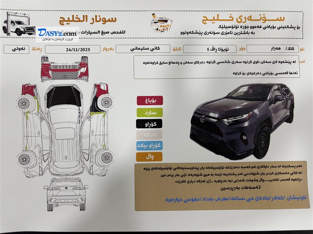 سەیارەیەکی پاکو بێ کێشەیە مالی دوستە هیچ کێشەیەکی نیە دوو پارچەی بۆیاخە بێ ناو گردنەوە هەش هەزار مەیل ڕێی کردە چوار تایەی لۆکی لەسەرە ژمارە کاتیە تاکو اێستا زمارە کاتێکەی نەشکێنراوە