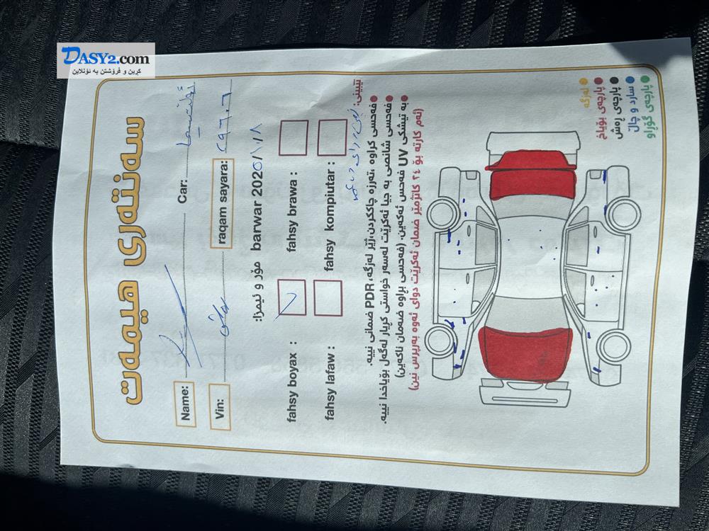 ، مەکینەو گێڕ بە شەرت و زۆر پاک ماوەتەوە ، دوو پارچەی بۆیاخە بۆنیت و سنوق لێدراوە , چەمەلەغی لای سەکن سێ پەنجە قوپاوی هەیە زۆر کەمە، بۆیاخی بۆنیت ی تۆزێ کاڵ بۆتەوە. ئێرباگی سوکان تەقیەوە و سیستەم کراوە.