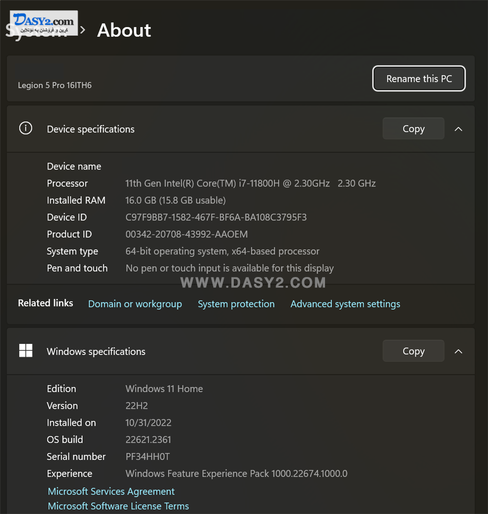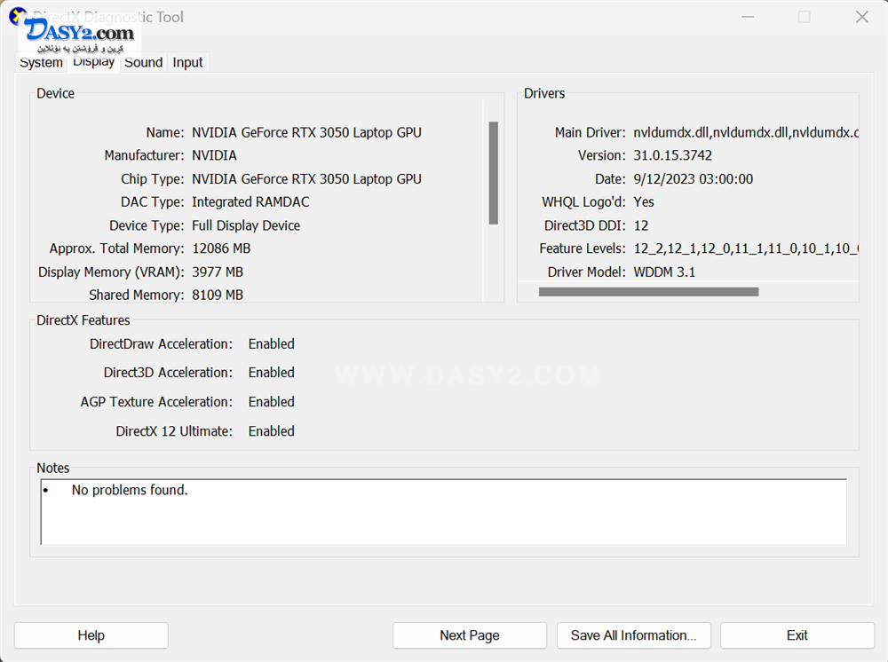 گرافیک کارد: ٤ گێگابایت NVIDIA GeForce RTX 3050