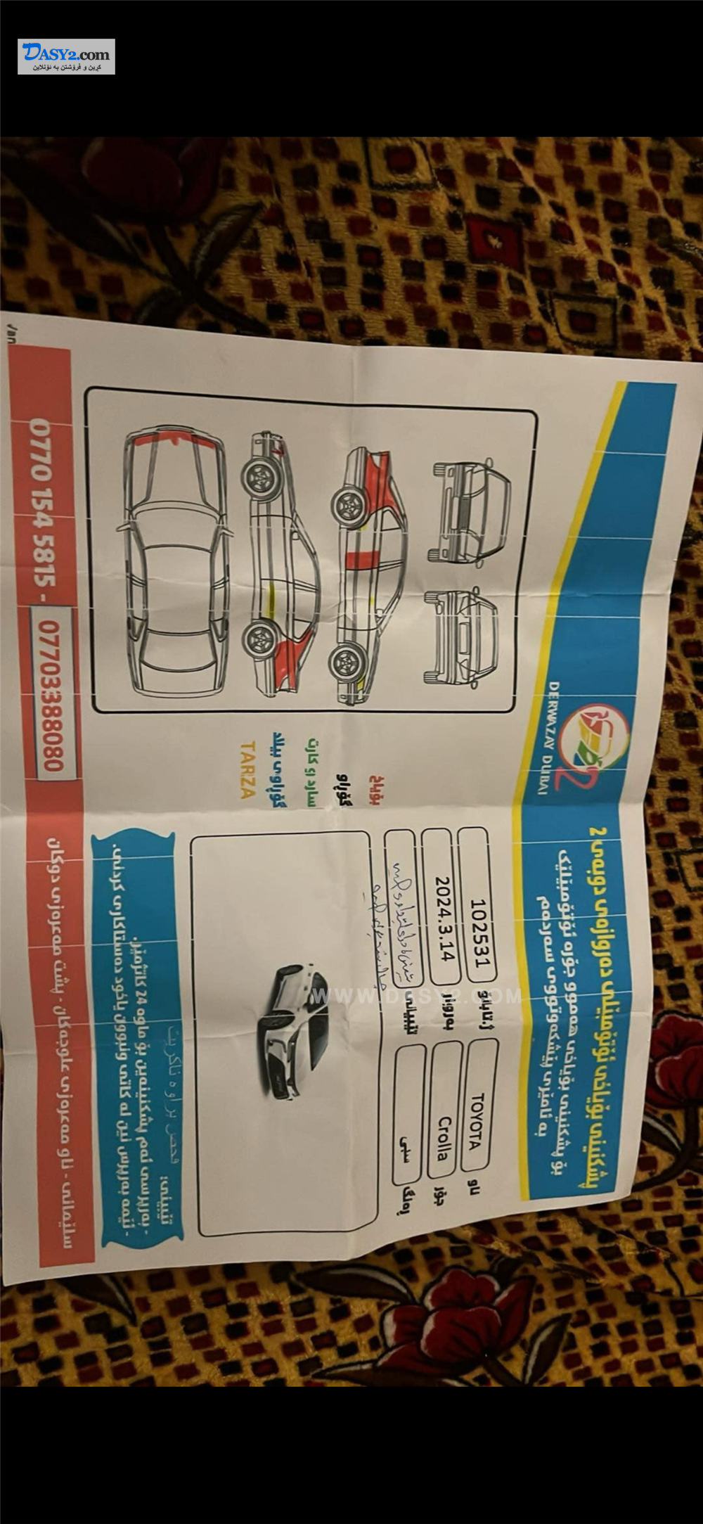 کرۆلا 2008 مەکینە گەورە گێڕ و مەکینە بە شەرت بۆیاخ تەنکە دەعمی نییە لەسەر بۆیاخ هەڵان بۆیاخی هەیە سۆنەریم داناوە سەنەوی تازەیە 2027 هیچ مەسرەفی تیا نییە تایەی تازەیە .