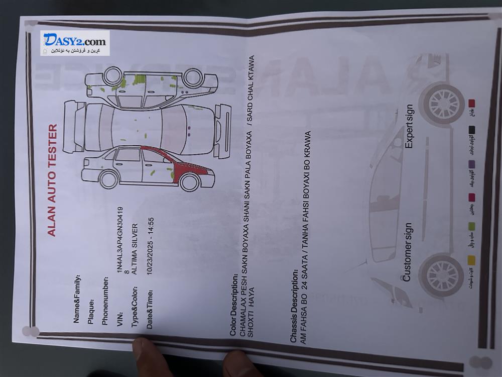 ئەڵتیما مۆدێل ٢٠١٦ مواسەفات s سەیارەکە یەک پارچە و پەڵەیە بۆیاخی هەیە سۆنەرم دانەوە یەک دینار مەسروفی تێدا نیە تەقەو ڕەقە هەمووی بەشەرت تایەی تازەیە سنەوی ڕەقەم تازەیە گێڕو مەکینە بەشەرت نەکراوە سەیارەکە ماڵی دۆستە