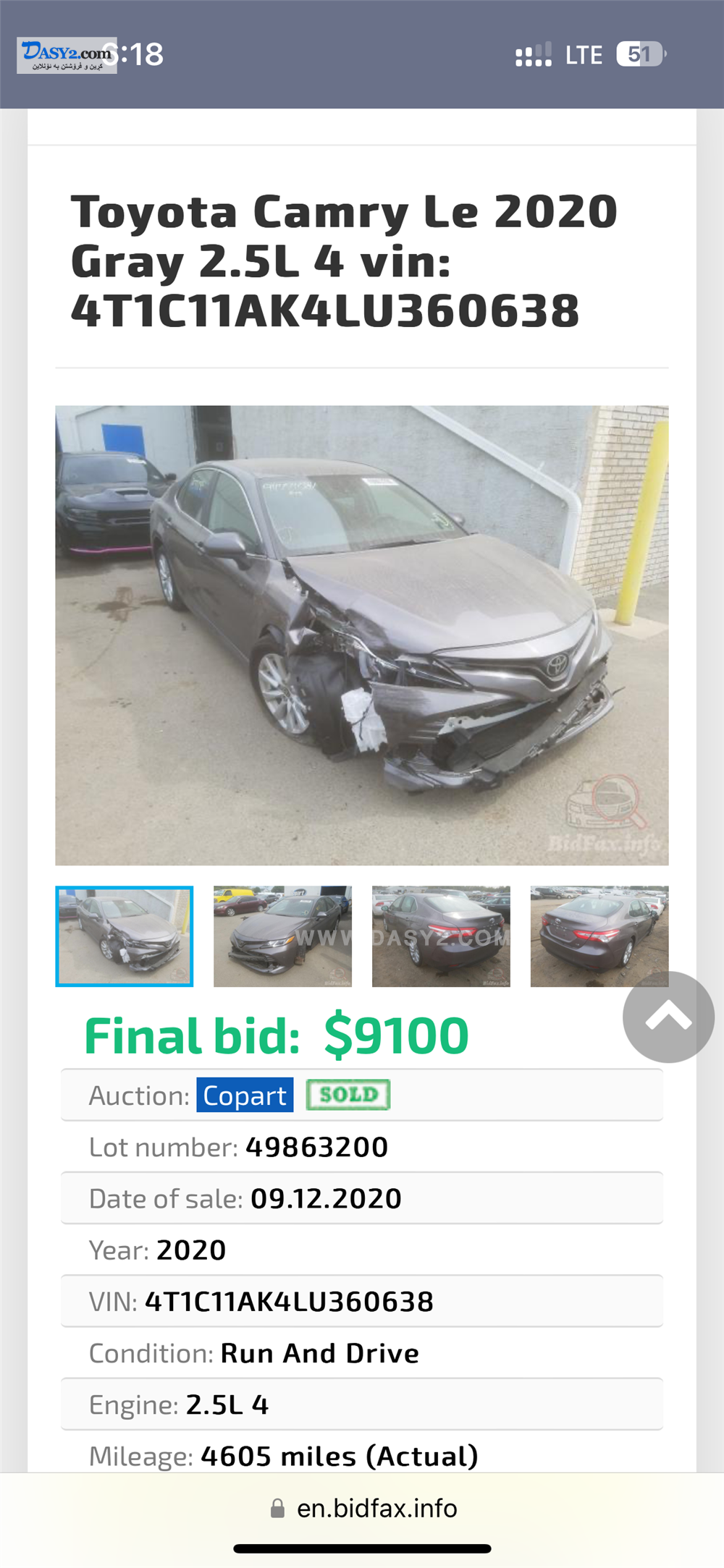 تويوتا كامرى موديل 2020 مواصفات ئه مريكى ره سمى ده عمه كه دانراوه جگه له وه 2 پارچه و 2 په له ى بوياغه بى ده عم پشت و پيشى كه پسه 75000 مايل رؤيشتووه ئه رباگى ته نها يه ك شانى ته قيوه سه نه وى 5/2026
