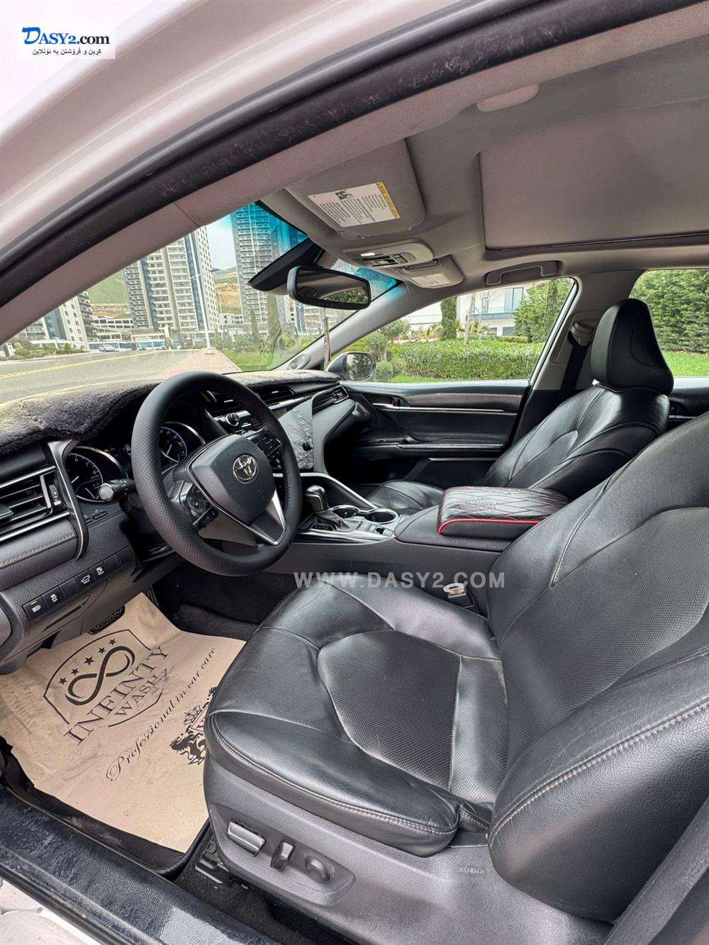 کوشنی چەرم (Leather) و کارەبایین، لەگەڵ سیستەمی گەرمکەرەوە (Heated seats).