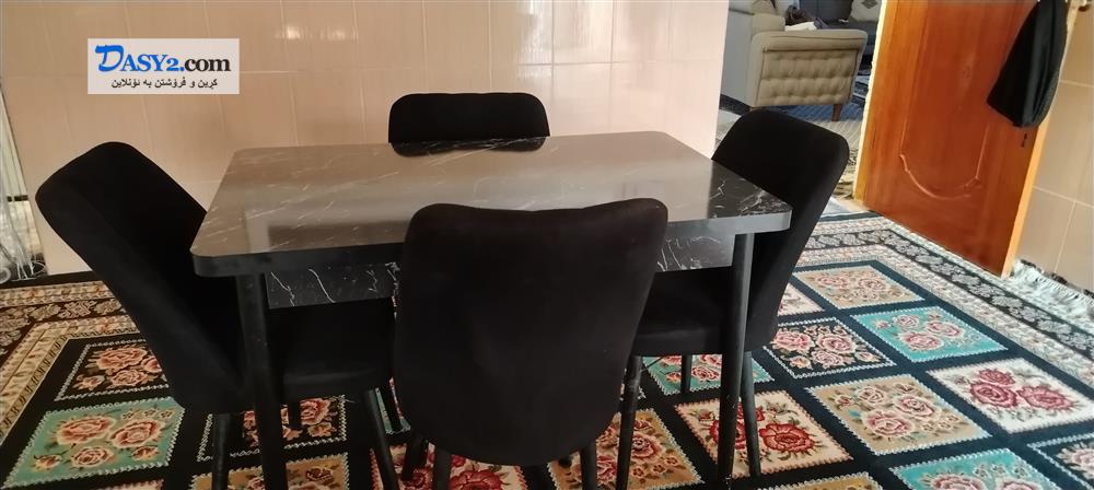 مێزی نان خواردن چوار کورسی هیچ شکاوییەکی ننیەو بێکێشەیە