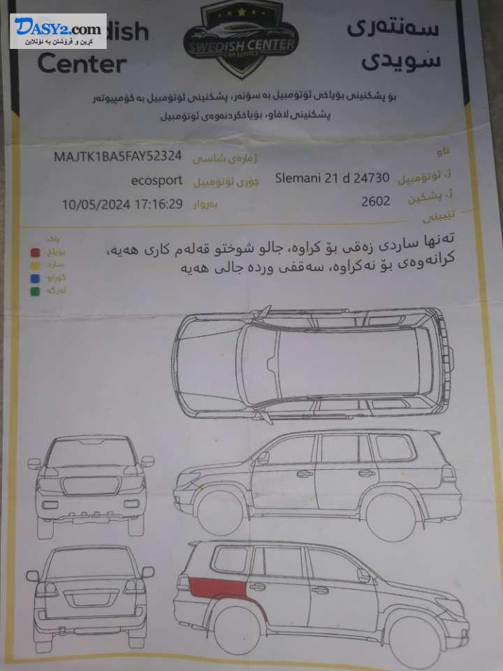 فۆرت ئیکۆسپۆڕت مۆدیل ٢٠١٥مەکینە ١٥ بێ تۆڕبۆ مەکینە مەرخوب گیڕو مەکینە بە شەرت سەنەوی تا ٢٠٢٧ تازەیە ٩٢ گەڵاو معامەلە ٠٧٧٤٨٢١٥٩٩٦ سلێمانی
