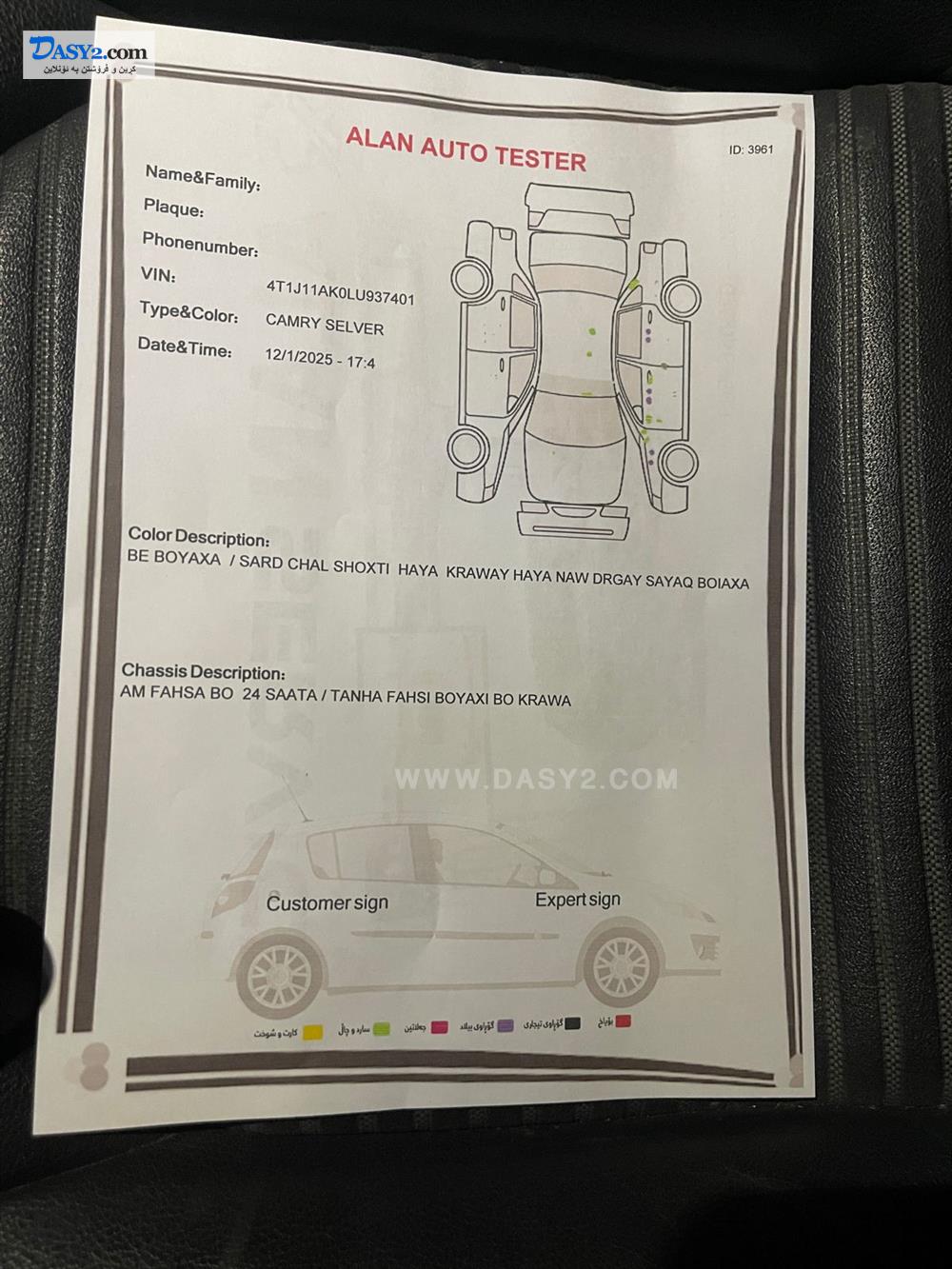 تۆیۆتا کامری ٢٠٢٠ +se بەسمەیە شغالە سلاید و شاشە گەورە و کوشیین جلد و گێری سوکان و وایەرلێس چارج ٣٦٠پلە رادار راداری ئاوێنەو کامل حاسە تەبرید مەرکەزیە بلاک تۆپە سەیارەکە