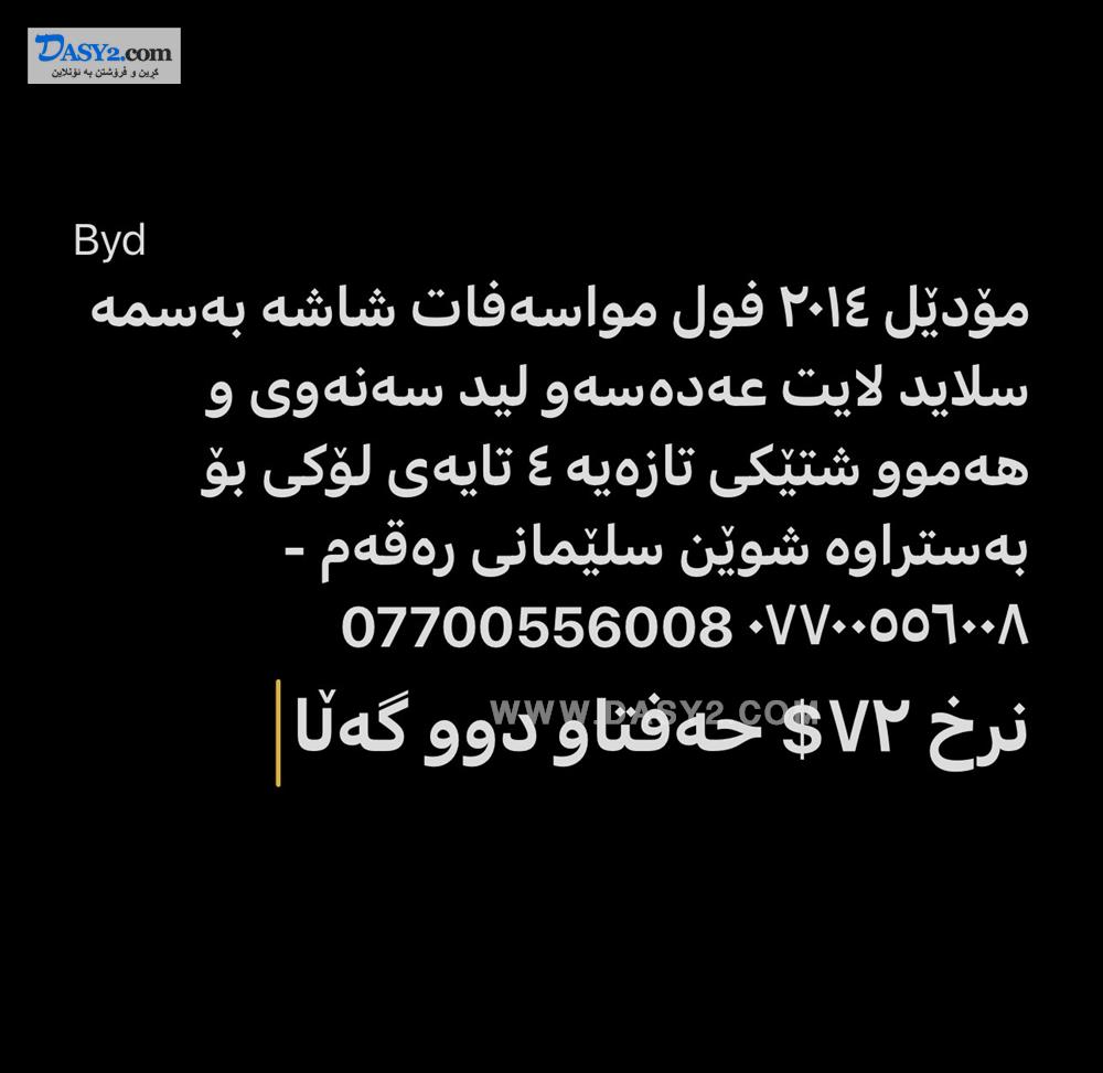 مۆدێل ٢٠١٤ فول مواسەفات شاشە بەسمە سلاید لایت عەدەسەو لید سەنەوی و هەموو شتێکی تازەیە ٤ تایەی لۆکی بۆ بەستراوە شوێن سلێمانی رەقەم - ٠٧٧٠٠٥٥٦٠٠٨ 07700556008