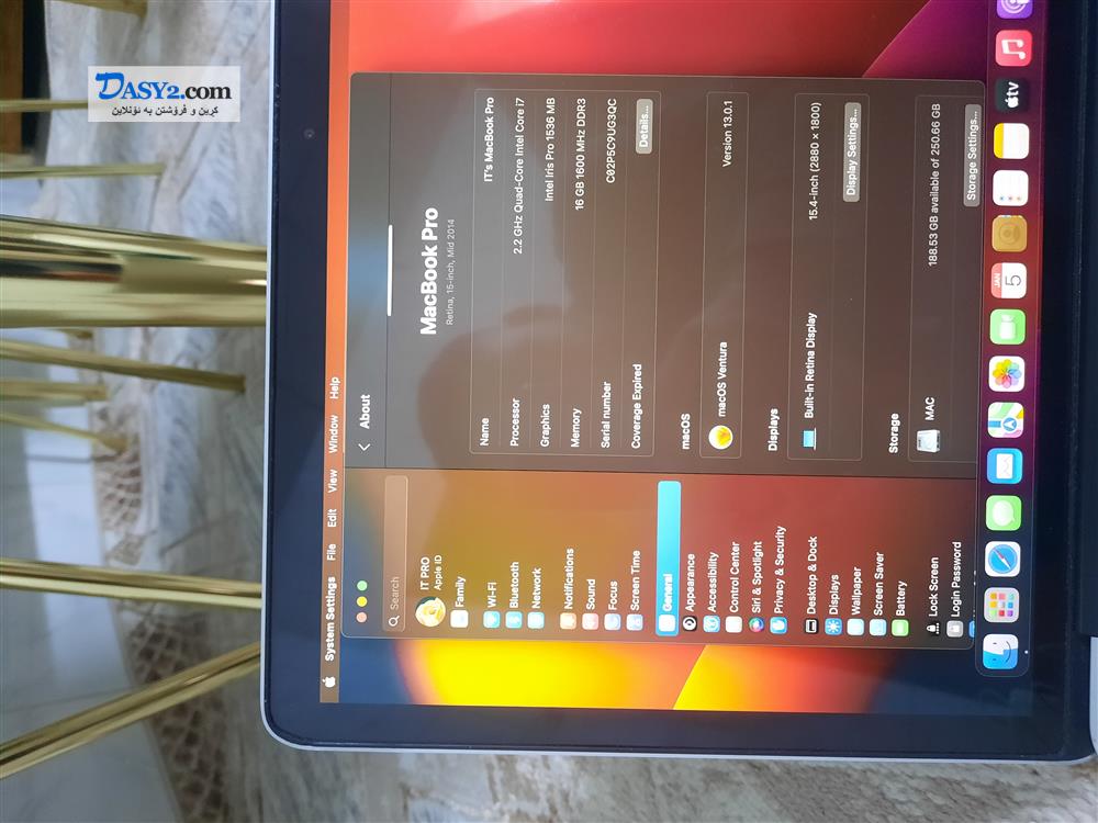 • Storage 256GB SSD - 15.4-inch IPS Retina (2880 x 1800).