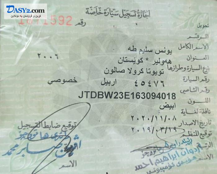 سڵاوبه رێزان. سه ياره ي بيكاشووخه ليجي مۆديل ٢٠٠٦ره نگ سپی مه كينه بچووکی گێرعادي ، چاملغێكي دواوه ي برايته وه ناوصندوقي هه نديكي كرتي يه و كه ميك سه قفي سارده كوتي هه يه به قه د دووبيست وپێشي سه ياره كه ي ليدراوي ني يه وهه زه وژینگه ورێگاوبان وسه نه وی به سه رچووه له ۲۰۲۰ ه وه. سه یاره كه توندو تۆله وبه ناوي خۆمه ووه رگه ران و گێرومه كينه وته بريدوبه ناوكردني به شه رته وداواي ٦٠وه ره قه ي لێده كه م ته له فون ٠٧٥٠٤٥٤٣٧٢٧