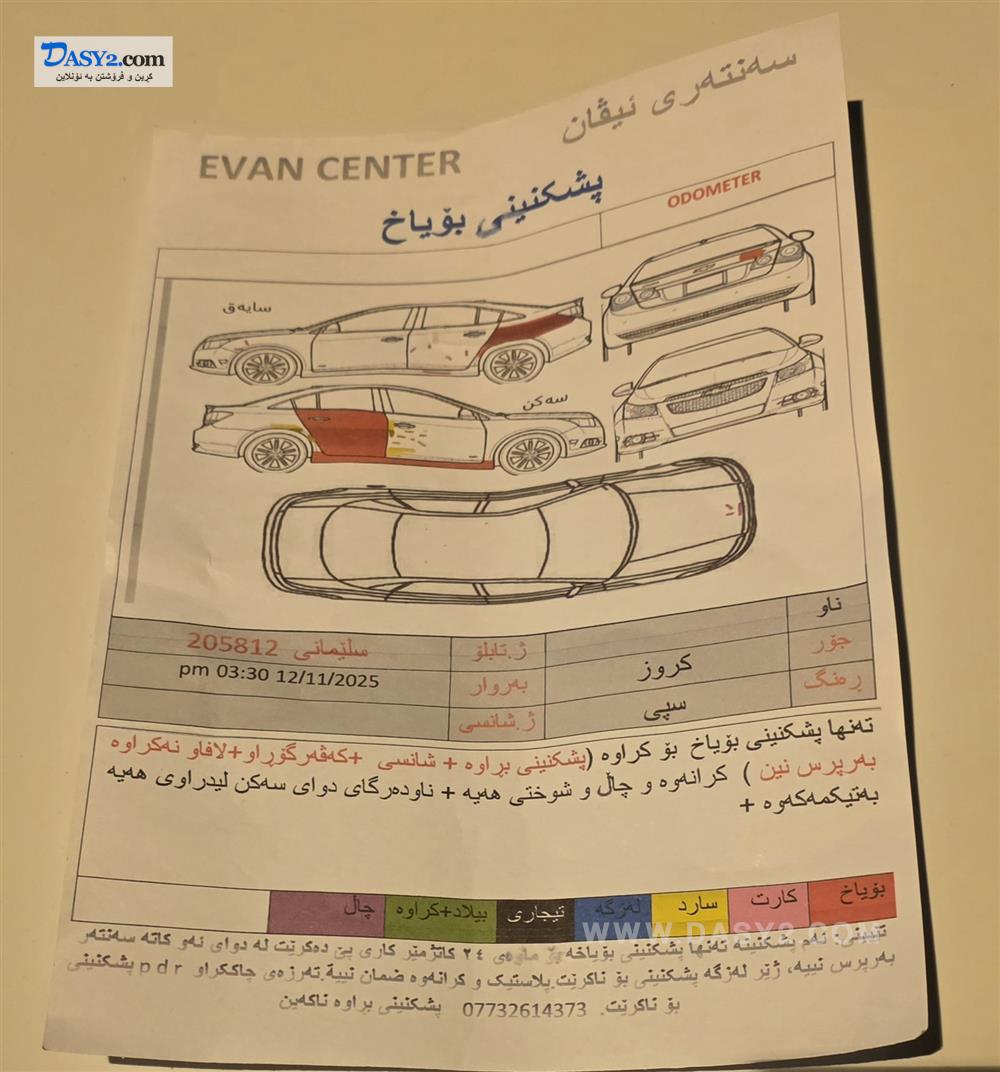 کروز ٢٠١٦ فول مواسەفات LTZ , بەسمە ، سڵاید ، کوشن جڵد ، سەنەوی تازەیە ، بەشەرتی تەحویل و غرامە ، گێڕ و مەکینە بێ عەیبە ، ٨٥ هەزاری هەقیقی ڕۆشتووە ، سپێری دانەگیراوە ، ڕەسمی سۆنەرەکەیم داناوە ، ٩٣ گەڵا و معامەلە.