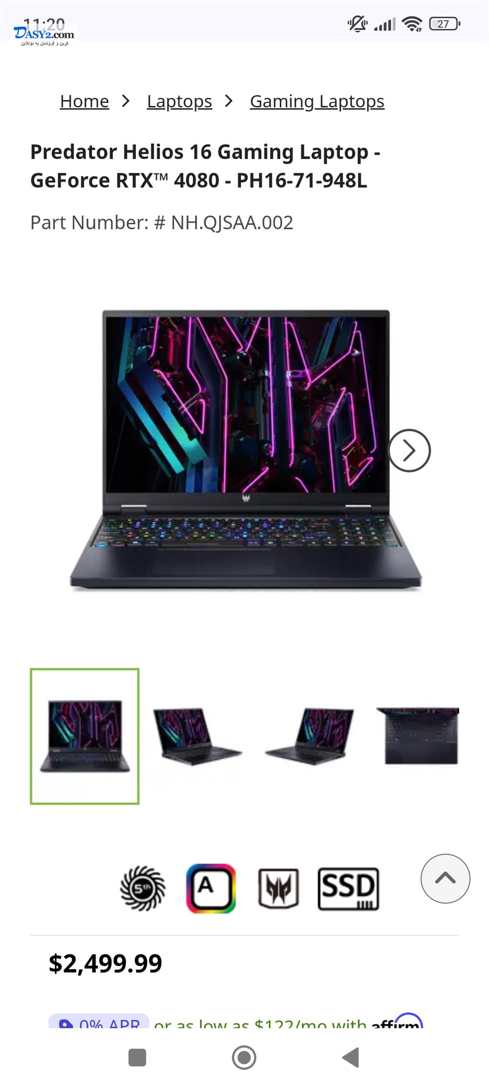 Model :Acer predator Helios 16