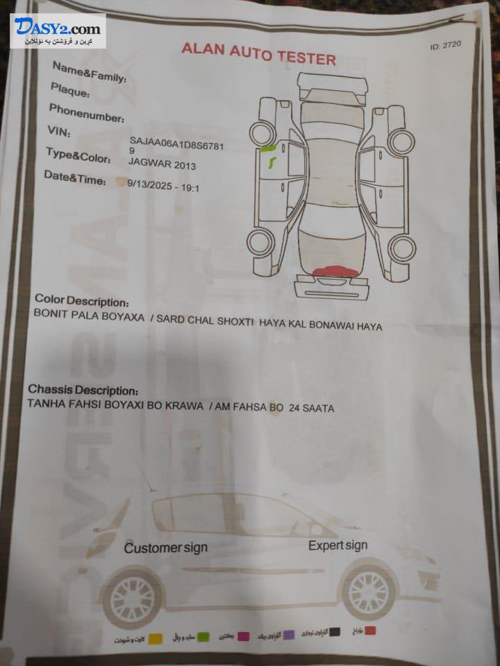 جاگوار 2013 V6 Supercharged (340hp)، رقم سليمانى، 81.122 ميل روشتووه،سلايد، پادل شفت،كاميرا، حاسه، به سمه، يه ك پارچه، يه ك دوو جيگا چال، گير و مه كينه به شه رت. سعرى 110 وه ره قه و مه جا ل.